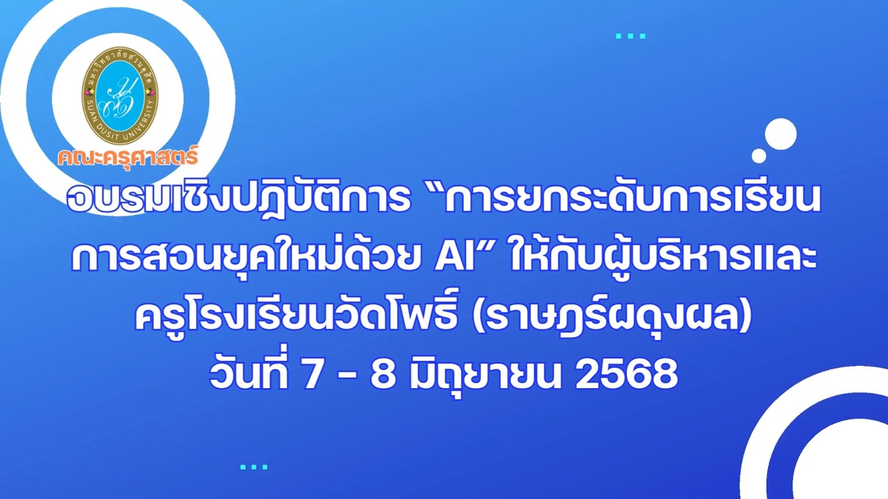 ฝ่ายฝึกประสบการณ์วิชาชีพครู คณะครุศาสตร์ มหาวิทยาลัยสวนดุสิต จัดนิทรรศการการปฏิบัติการสอนในสถานศึกษา 1 หลักสูตรศึกษาศาสตรบัณฑิต (หลักสูตร 4 ปี) สาขาวิชาการศึกษาปฐมวัย และสาขาวิชาการประถมศึกษา ภาคการศึกษาที่ 1/2568