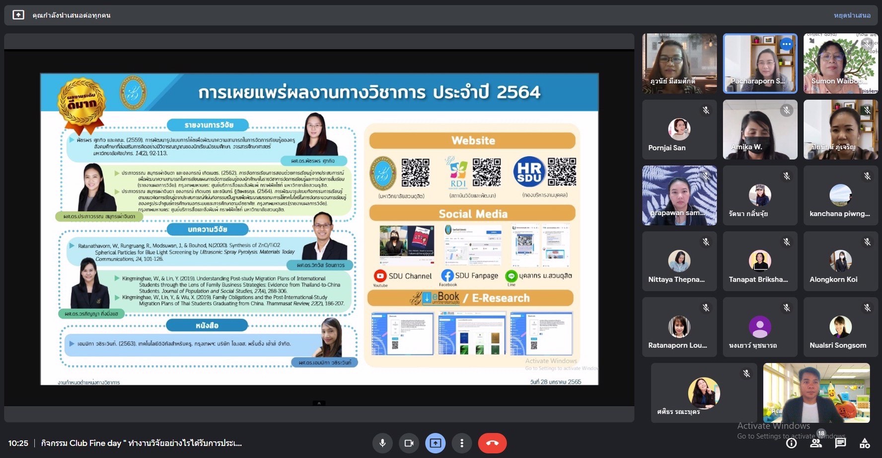ฝ่ายวิจัยและการจัดการความรู้ คณะครุศาสตร์ มหาวิทยาลัยสวนดุสิต จัดกิจกรรม Club Fineday โหนกระแส หัวข้อ “ทำผลงานทางวิชาการอย่างไรให้ได้รับการประเมินในระดับดีมาก”เมื่อวันอังคารที่ 8 กุมภาพันธ์ 2565 เวลา 9.00 น. – 12.00 น. ผ่านระบบออนไลน์ โปรแกรม Google Meet