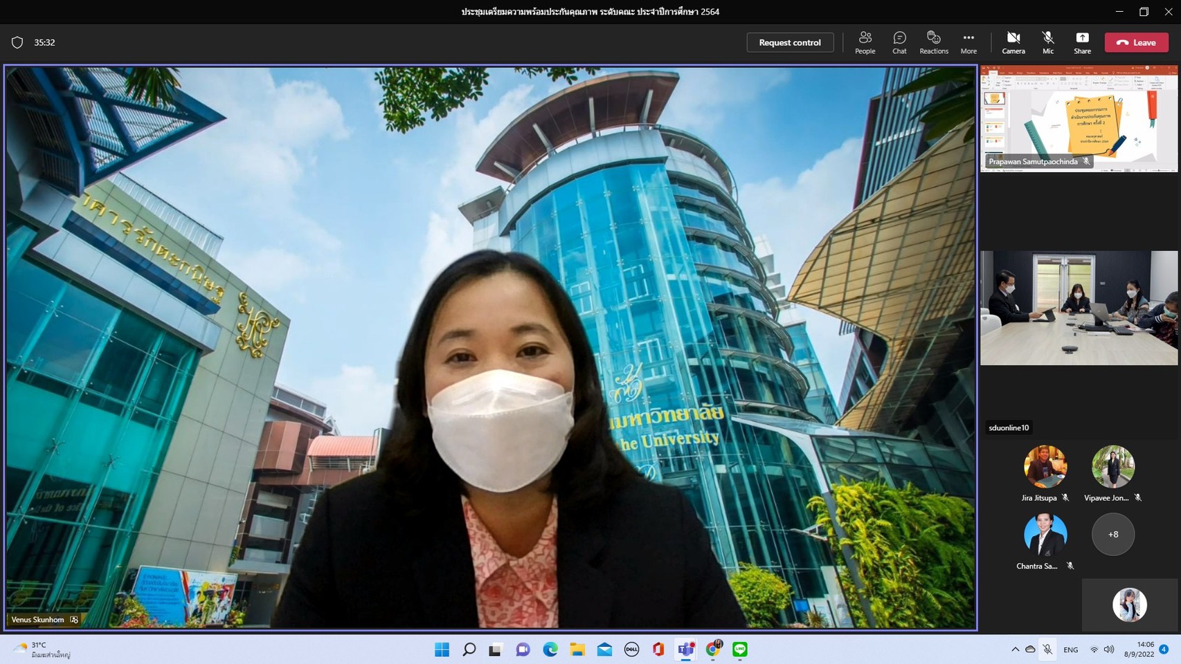 ผู้ช่วยศาสตราจารย์ ดร.วีณัฐ สกุลหอม คณบดีคณะครุศาสตร์ มหาวิทยาลัยสวนดุสิต เป็นประธานการประชุมคณะกรรมการดำเนินงานประกันคุณภาพการศึกษา เพื่อเตรียมความพร้อมในการเข้ารับการตรวจประกัน ในระดับคณะฯ