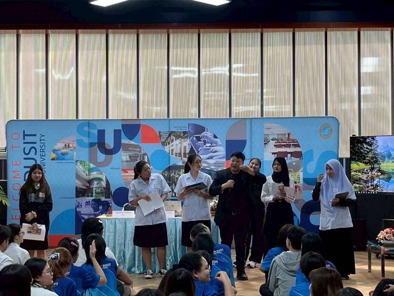 กิจกรรมครั้งนี้มุ่งเน้นการเตรียมความพร้อมด้านทักษะทางจิตวิทยา โดยเฉพาะเทคนิคการให้คำปรึกษา (Counseling) การรับฟังด้วยใจ และการสื่อสารที่ไม่ใช้ถ้อยคำ (Non-verbal communication) ซึ่งเป็นทักษะวิชาชีพที่จำเป็นอย่างยิ่งสำหรับนักศึกษาชั้นปีสูง ก่อนที่จะก้าวเข้าสู่กระบวนการฝึกประสบการณ์วิชาชีพในสถานประกอบการจริงต่อไป เมื่อวันอังคารที่ 2 ธันวาคม 2568 เวลา 13.30–15.00 น. ณ ห้อง Activity Space อาคาร 1 ชั้น 2 มหาวิทยาลัยสวนดุสิต