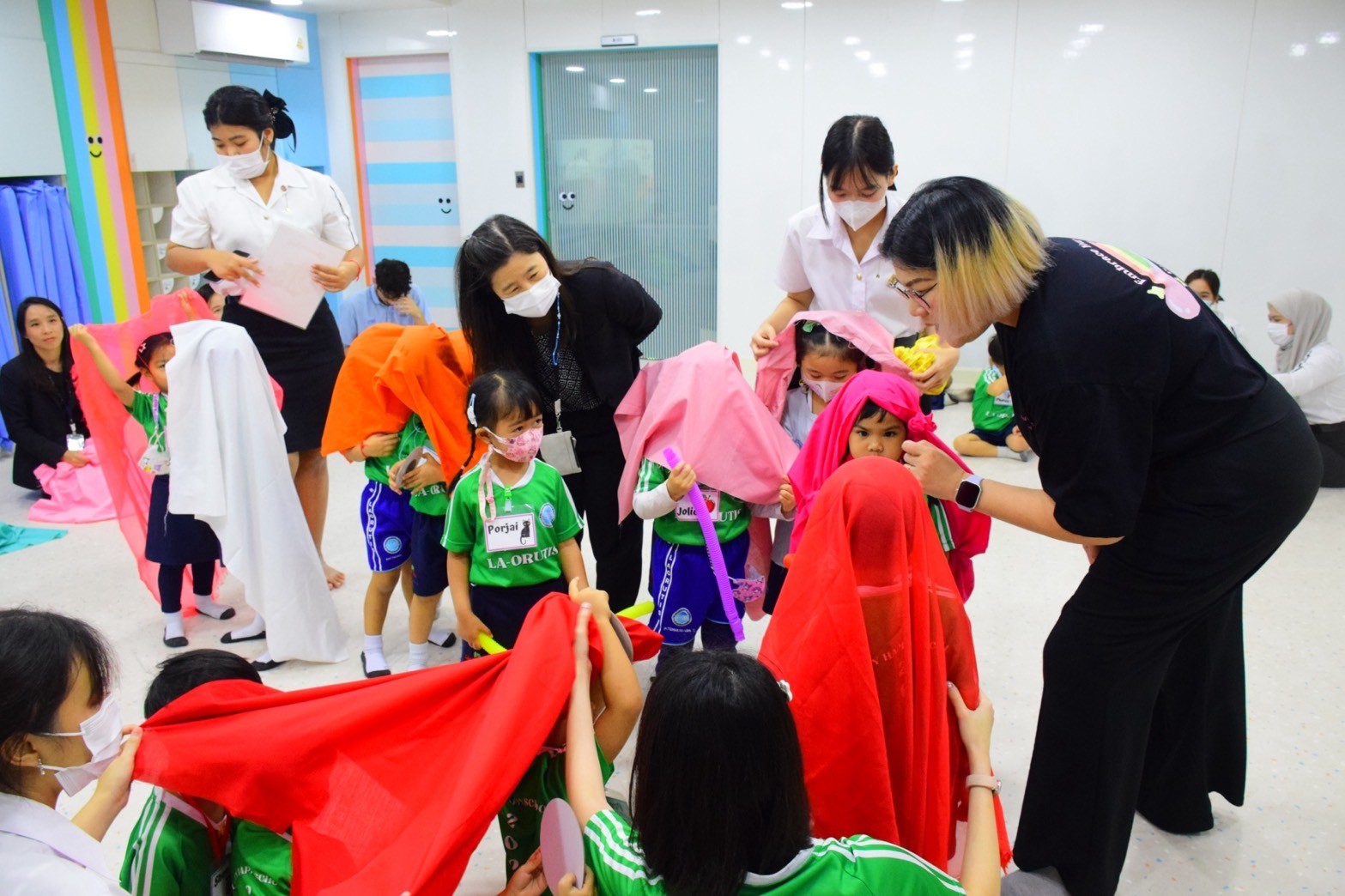 คณะครุศาสตร์ โดย ผศ.ดร.พรชุลี ลังกา หัวหน้าฝ่ายวิเทศสัมพันธ์ นำนักศึกษาชั้นปีที่ 3 หลักสูตรศึกษาศาสตรบัณฑิต สาขาวิชาการศึกษาปฐมวัย ในรายวิชาภาษาอังกฤษในชั้นเรียนปฐมวัย เข้าร่วมสังเกตการจัดกิจกรรมภาษาอังกฤษในชั้นเรียน La-or Next โดยได้รับเกียรติจากคุณครูญานี เหล่าวิริยะรัตน์ ลาฟเฟิ่น และ Mr. Lee Laffan ผู้เชี่ยวชาญด้าน Creative Drama สำหรับเด็กปฐมวัยเป็นวิทยากร ซึ่งกิจกรรมนี้เป็นส่วนหนึ่งของโครงการความร่วมมือระหว่างคณะครุศาตร์กับโรงเรียนสาธิตละอออุทิศ เพื่อเตรียมความพร้อมนักศึกษาในการฝึกประสบการณ์วิชาชีพตามแนวสหกิจศึกษา ในการนี้ ผศ.นิศารัตน์ อิสระมโนรส รองคณบดีฝ่ายวิชาการ ดร.ปุณยวีร์ จิโรภาสวรพงศ์ ผู้ช่วยคณบดีและอาจารย์ที่ปรึกษา รวมทั้งคุณครูอุไรวรรณ โชติชุษณะ ฝ่ายวิชาการโรงเรียนสาธิตละอออุทิศ เข้าร่วมกิจกรรมกับนักศึกษาด้วย เมื่อวันอังคารที่ 9 ธันวาคม 2568 ณ ห้องเรียน La-or Next อาคาร 31 โรงเรียนสาธิตละอออุทิศ กรุงเทพมหานคร