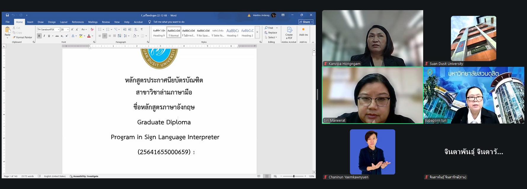 🤟🏻วันอังคารที่ 23 ธันวาคม 2568 ศูนย์การศึกษาพิเศษ คณะครุศาสตร์ มหาวิทยาลัยสวนดุสิต ได้จัดการประชุมเพื่อพัฒนาและปรับปรุงหลักสูตรประกาศนียบัตรบัณฑิต สาขาวิชาล่ามภาษามือ✍🏻 ผ่านระบบออนไลน์ เป็นการระดมความคิดในการพัฒนาและปรับปรุงหลักสูตรให้ทันสมัยเพื่อส่งเสริมนักศึกษาได้มีทักษะที่จำเป็นต่อการใช้งานจริงในอนาคต (Future skills)