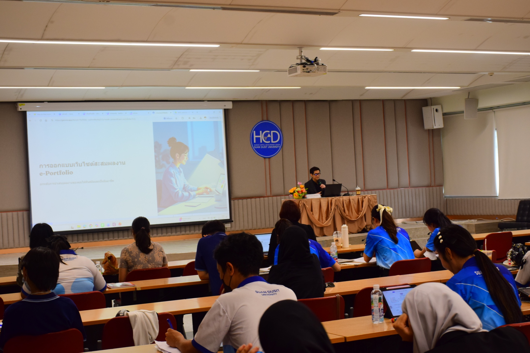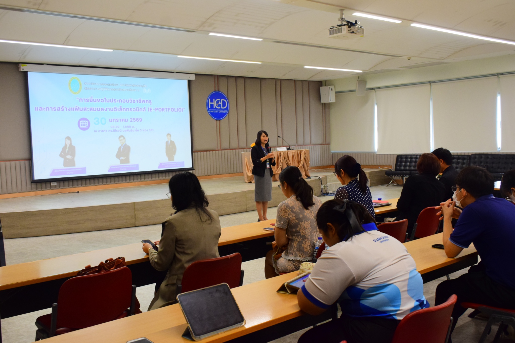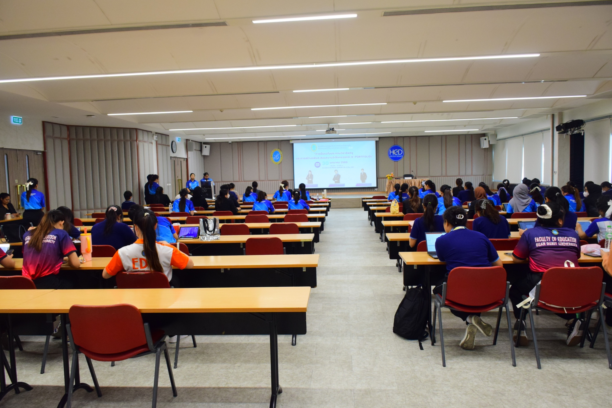 หลักสูตรศึกษาศาสตรบัณฑิต สาขาวิชาการประถมศึกษา คณะครุศาสตร์ จัดสัมมนาระหว่างการปฏิบัติการสอนในสถานศึกษา 2 (ครั้งที่ 3) โดยได้รับเกียรติจาก ผู้ช่วยศาสตราจารย์อลงกรณ์ เกิดเนตร และผู้ช่วยศาสตราจารย์ ดร.ชนินทร์ ฐิติเพชรกุล เป็นวิทยากรในหัวข้อ “การยื่นขอใบประกอบวิชาชีพครู และการสร้างแฟ้มสะสมผลงานอิเล็กทรอนิกส์ (E-Portfolio)” ให้กับนักศึกษาชั้นปีที่ 4 หลักสูตรศึกษาศาสตรบัณฑิต สาขาวิชาการศึกษาปฐมวัย และสาขาวิชาการประถมศึกษา ในมหาวิทยาลับ วิทยาเขตสุพรรณบุรี ศูนย์การศึกษา นครนายก และศูนย์การศึกษา ลำปาง