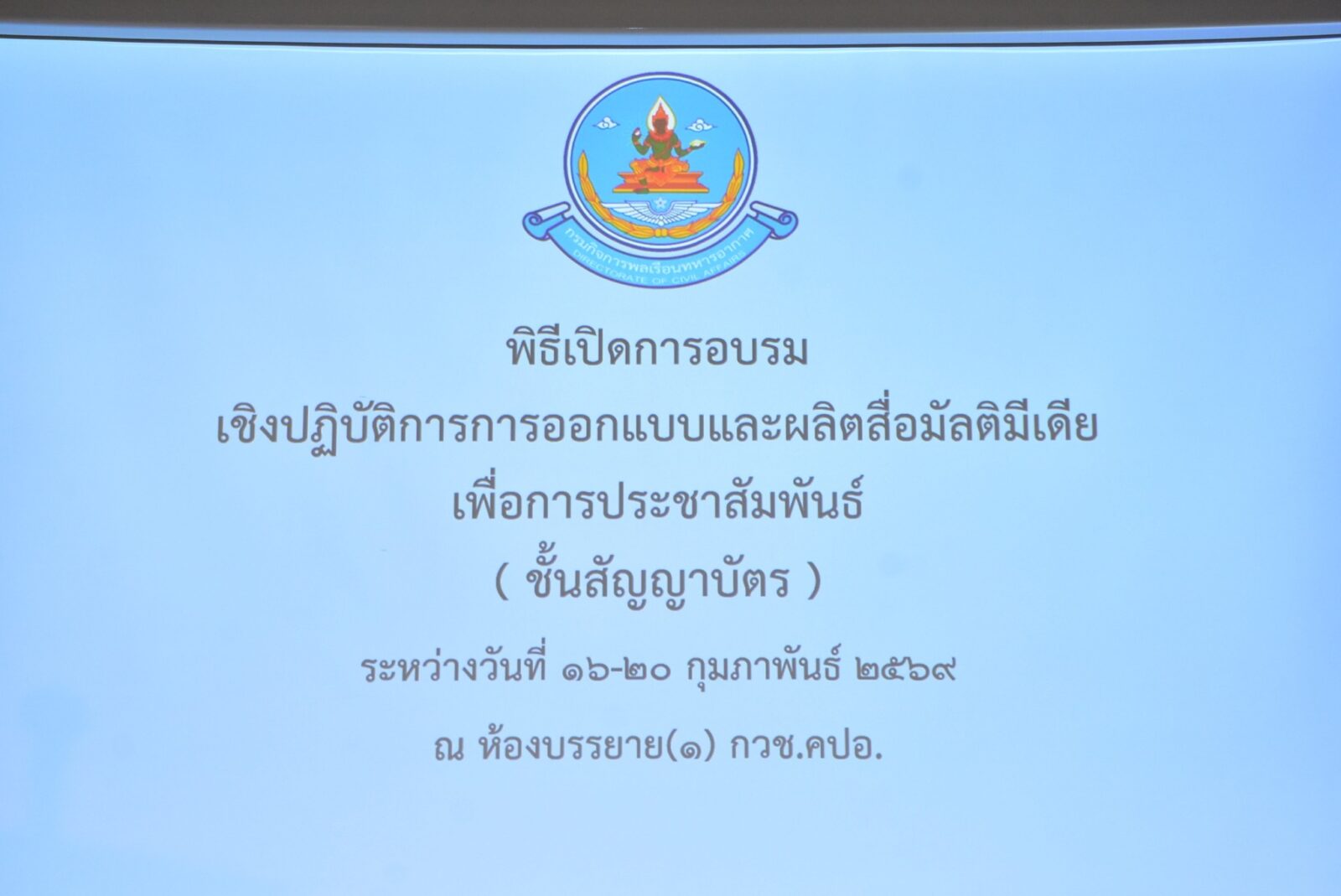 20 ก.พ. 2569 – คณะครุศาสตร์ มหาวิทยาลัยสวนดุสิต ร่วมกับ กรมกิจการพลเรือนทหารอากาศ จัดอบรมการผลิตสื่อมัลติมีเดียเพื่อการประชาสัมพันธ์แก่นายทหารชั้นสัญญาบัตร