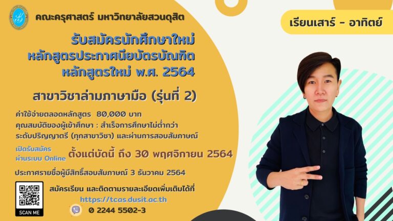 รับสมัครนักศึกษาใหม่หลักสูตรประกาศนียบัตรบัณฑิต หลักสูตรใหม่ พ.ศ. 2564 สาขาวิชาล่ามภาษามือ (รุ่นที่ 2)