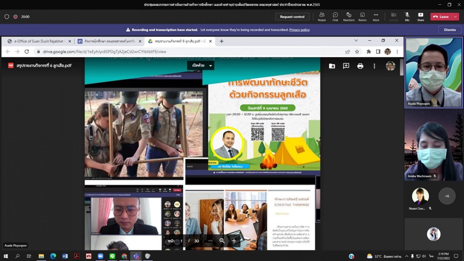 ผู้ช่วยศาสตราจารย์อัษฎา พลอยโสภณ รองคณบดีฝ่ายบริหารและกิจการนักศึกษา คณะครุศาสตร์ มหาวิทยาลัยสวนดุสิต เป็นประธานการประชุมคณะกรรมการดำเนินงานกิจการนักศึกษา และฝ่ายทำนุบำรุงศิลปวัฒนธรรม ครั้งที่ 1/2565