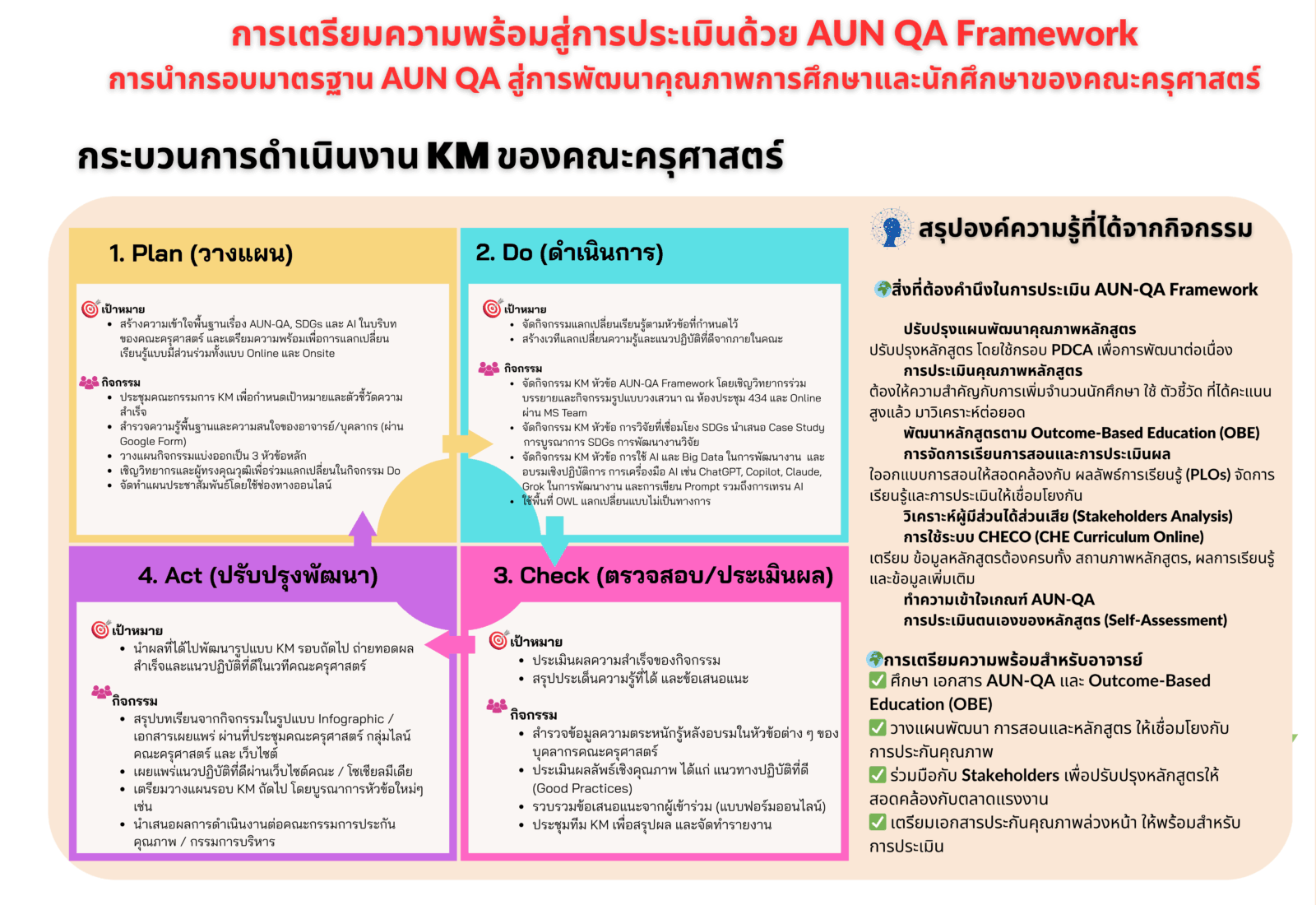 การเตรียมความพร้อมสู่การประเมินด้วย AUN QA Frameworkการนำกรอบมาตรฐาน AUN QA สู่การพัฒนาคุณภาพการศึกษาและนักศึกษาของคณะครุศาสตร์
